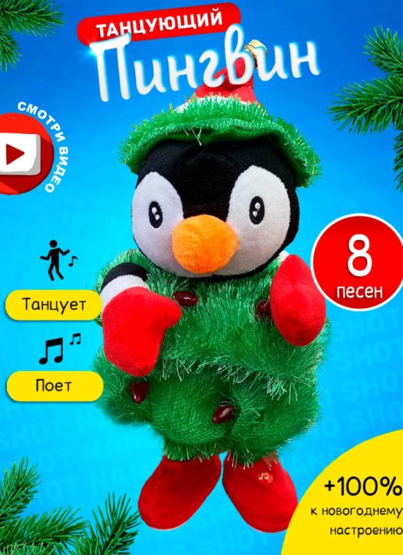 Танцующий Пингвин поет новогодние песни . Подарите праздник себе и своим близким, разместив фигурку Пингвина под ёлку, на тумбочку или стол дома или в офисе. Можно использовать как самостоятельное украшение, как дополнение любых новогодних декораций, а может выступать и в качестве подарка. Интерактивный Пингвин забавно танцует в такт музыки и добавляет новогоднее настроение. Пингвинчик станет отличным подарком для детей и взрослых, забавным сюрпризом для близких и коллег или интерсным новогодним украшением для Вашего дома. Одно нажатие и Новогодний пингвин уже поёт и танцует для Вас, заводная мелодия создает атмосферу новогоднего праздника. Поющая игрушка это лучший подарок к Новому году. Музыкальная игрушка для мальчиков и девочек работает на трех батарейках АА (не идут в кмплекте)