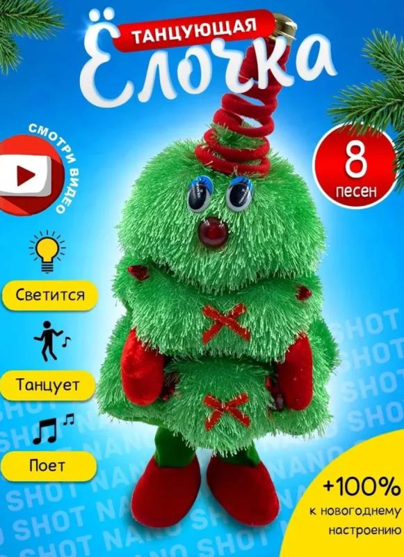 Танцующая Елка поет новогодние песни. Подарите праздник себе и своим близким, разместив фигурку Елочки под ёлку, на тумбочку или стол дома или в офисе. Можно использовать как самостоятельное украшение, как дополнение любых новогодних декораций, а может выступать и в качестве подарка. Интерактивная Елочка забавно танцует в такт музыки и добавляет новогоднее настроение. Маленькая искусственная елка станет отличным подарком для детей и взрослых, забавным сюрпризом для близких и коллег или интерсным новогодним украшением для Вашего дома. Одно нажатие и Ёлка уже поёт и танцует для Вас, заводная мелодия создает атмосферу новогоднего праздника. Поющая игрушка это лучший подарок к Новому году. Музыкальная игрушка для мальчиков и девочек работает на трех батарейках АА (не идут в кмплекте)