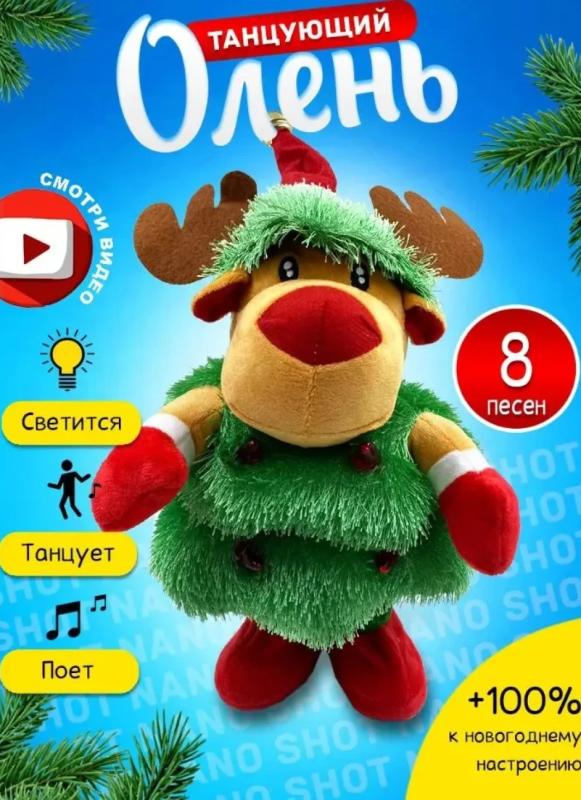 Танцующий олененок поет новогодние песни и русские современные хиты . Подарите праздник себе и своим близким, разместив фигурку Оленя под ёлку, на тумбочку или стол дома или в офисе.