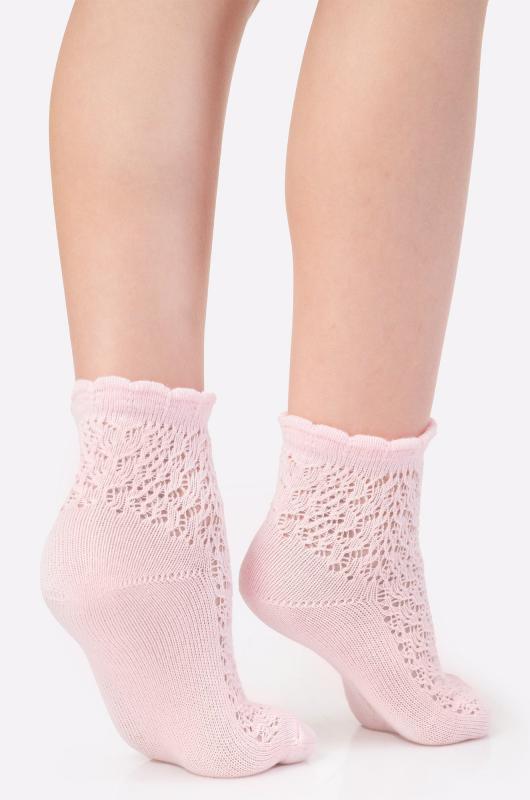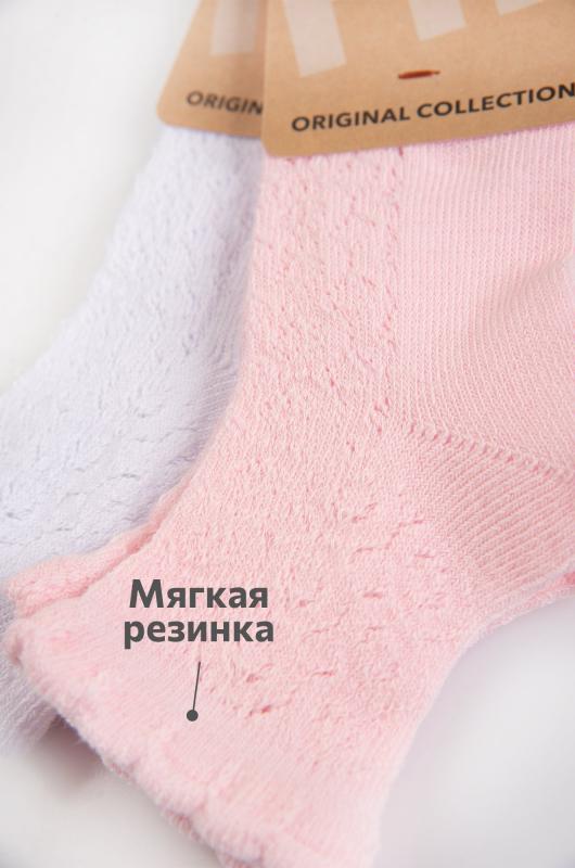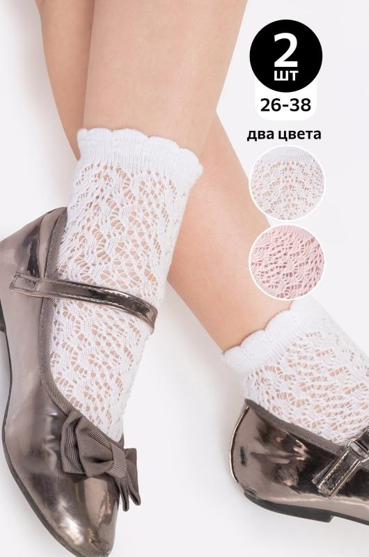Нарядные носки из нежного хлопка – идеальный вариант для школы и на праздник! Детские носки для девочек и девочек подростков украшены милой ажурной вязкой, что добавляет образу нотку кокетства. В комплекте 2 пары: розовые и белые.