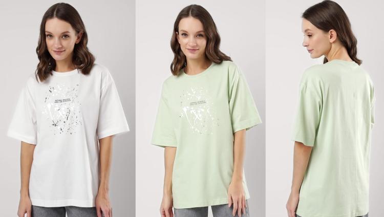 Описание: Футболка оверсайз свободного кроя из хлопкового трикотажного полотна. Слегка спущенный короткий рукав. Округлая горловина с обтачкой из рибаны. По спинке средний шов. Спереди принт с фольгой. Состав: 100% хлопок