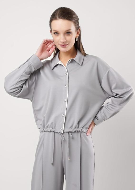 Описание: Комплект из джемпера и брюк из трикотажного полотна. Джемпер с застежкой на пуговицы среднего объёма с отложным воротником и лацканом. Накладной карман. Рукав удлиненный. Брюки прямые с цельновыкроенным поясом на резинке. Состав: 50% хлопок, 50% модал