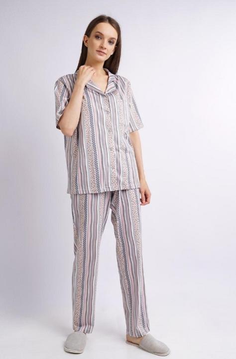 Состав: 100% хлопок Описание: Пижама для дома из хлопкового трикотажного полотна.Футболка прямого кроя, округлая горловина с обтачкой из кашкорсе.Короткий втачной рукав. Бриджы прямого кроя, пояс на внутренней резинке.Боковые карманы с отрезным бочком.