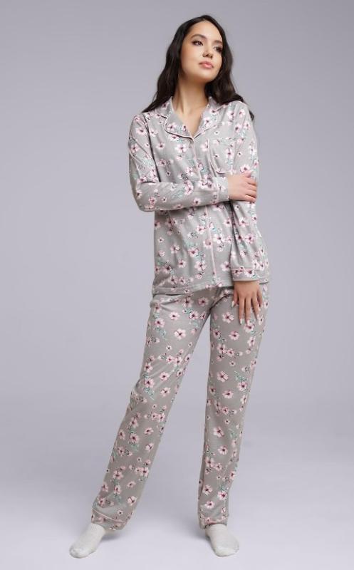Женский домашний комплект из рубашки и брюк. Костюм выполнен из прочного, износостойкого хлопкового полотна с лиоцелем, который производится из волокон эвкалипта. Поэтому мягкая ткань с легким блеском приятна на ощупь, не вызывает раздражения и прекрасно дышит. Комплект для дома комфортно сидит на любой фигуре, не теряет форму и яркость даже после множества стирок, практически не мнется. Рубашка с отложным воротничком и застежкой на пуговицы дополнена нагрудным карманом. По рукавам манжеты. Прямые брюки в растительную набивку комфортной посадки на поясе с внутренней резинкой и удобными карманами. Состав: 50% хлопок, 50% лиоцель