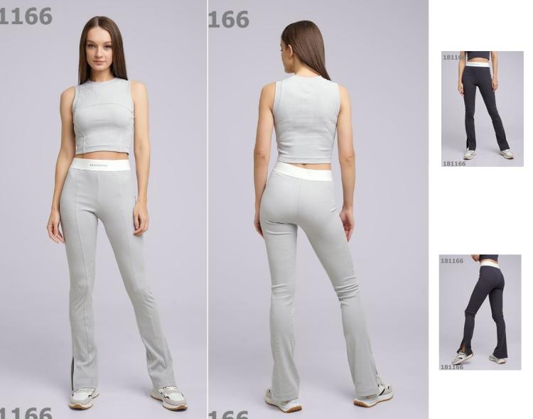 Описание: Брюки клеш для дома и отдыха,облегающие из трикотажного полотна кашкорсе. По переду по центру швы, внизу по бокам разрезы. По талии широкая резинка, с прорезиненными буквами по центру пояса. Состав: 95% хлопок, 5% эластан