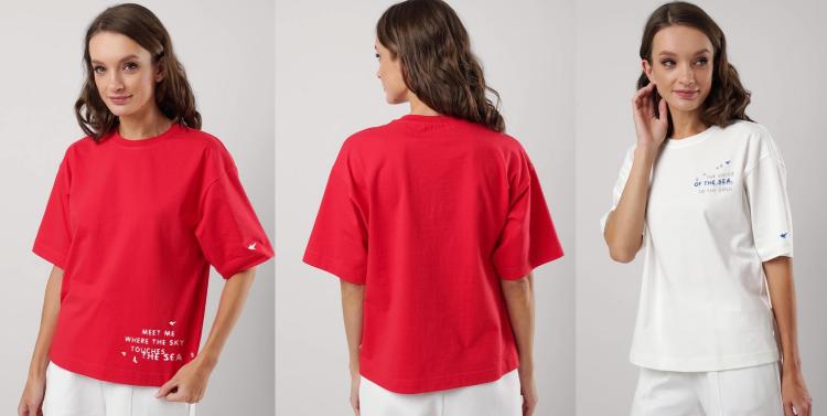 Описание: Футболка для дома и отдыха прямого силуэта из хлопкового трикотажного полотна интерлок. Округлая горловина с обтачкой из кашкорсе. Короткий рукав со спущенной линией плеча. На детали переда принт, нашивка. Состав: 100% хлопок
