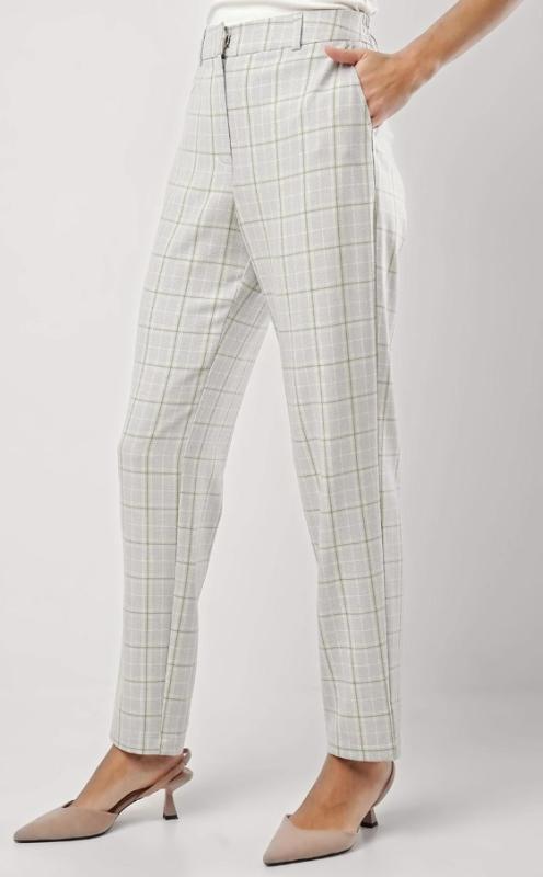 Описание: Брюки зауженные из текстильного полотна с добавлением вискозы габардин. Притачной пояс со шлевками, гульфиком и застежкой на молнию, крючок. Боковые карманы с отрезным бочком. По спинке пояс на резинке. Заутюженые стрелки. Состав: 64% полиэстер, 33% вискоза, 3% эластан