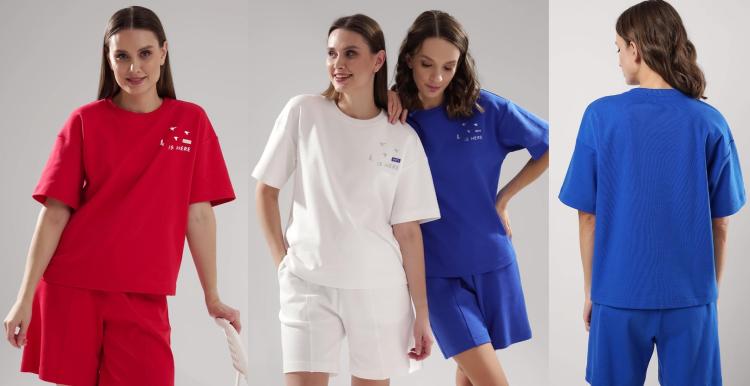 Состав: 100% хлопок Описание: Пижама для дома из хлопкового трикотажного полотна.Футболка прямого кроя. Округлая горловина с обтачкой из кашкорсе. Короткий втачной рукав. На спинке внутренняя кокетка, застил. Шорты короткие,свободные. По талии притачная резинка жаккард, нашивка.