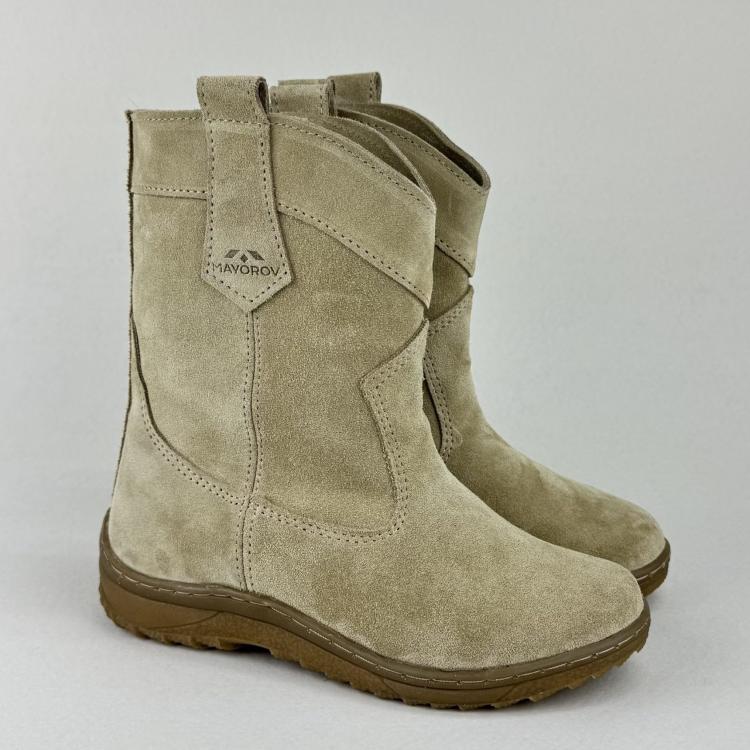 Казаки теплые. Материал верха – натуральная замша. Детали: внешняя сторона голенища выполнена из замши, внутри натуральная овчина(между ними утеплитель), стелька из теплой шерсти, подошва войлок, логотип бренда. Цветовой оттенок обуви может отличаться от представленного на фотографии из-за настроек монитора, а также различий в оттенках разных партий поставленного материала.