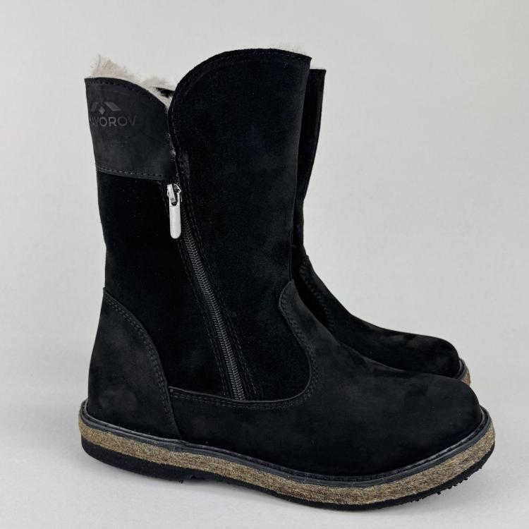 Полусапоги тёплые. Материал верха – натуральная замша. Детали: внешняя сторона голенища выполнена из замши, внутри натуральная овчина(между ними утеплитель), замок снаружи, стелька из теплой шерсти, подошва ТЭП, логотип бренда. Цветовой оттенок обуви может отличаться от представленного на фотографии из-за настроек монитора, а также различий в оттенках разных партий поставленного материала