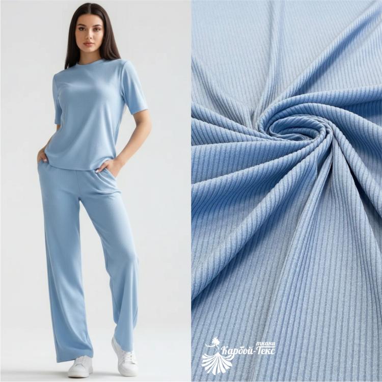Состав: 80 % - х-б, 15%-п-э, 5% - лайкра Ширина: 80*2 (чулок) Плотность: 395 гр-м2 Качество: Карде (1,5 м-кг) Трикотажная ткань рибана представляет собой полотно, связанное особым способом. В результате чередования изнаночных и лицевых петель получается материал, по фактуре напоминающий мелкую резинку. Изделия из этого трикотажа прекрасно сохраняют форму, способны выдержать большое количество стирок, не дают усадки, не покрываются катышками. При правильном уходе долгое время не теряют первоначальный вид. Обладают воздухопроницаемостью и гигроскопичностью. Гладкокрашеная и набивная рибана применяется для изготовления комплектов домашней одежды, нижнего белья, пижам и ночных сорочек, ползунков и чепчиков для младенцев. Из ткани с лайкрой шьют джемперы, кофты, водолазки, платья и костюмы.