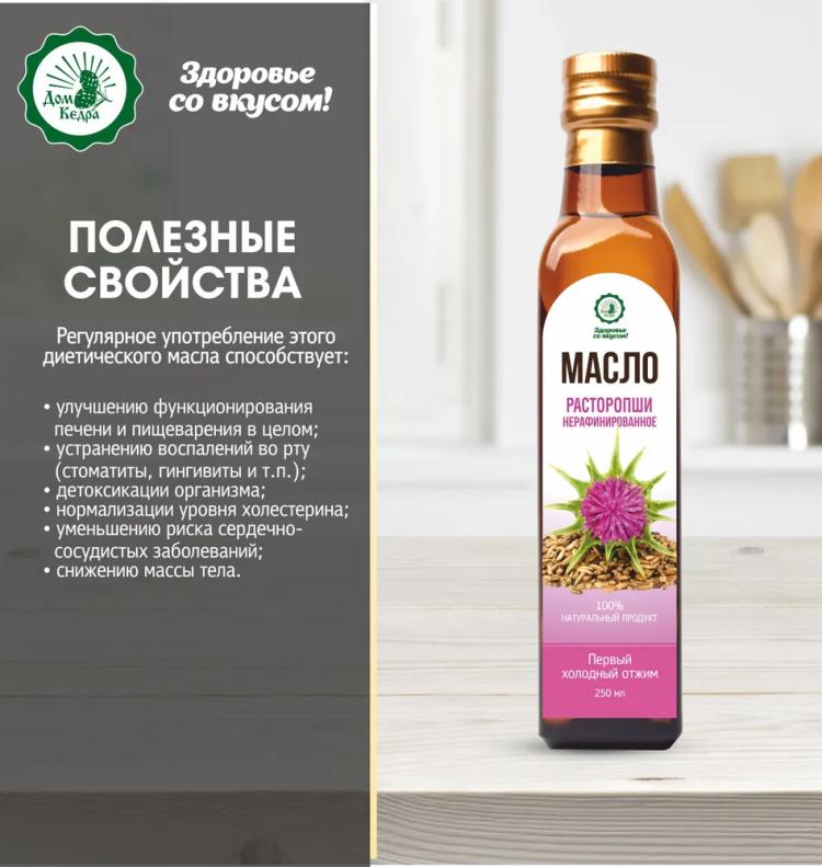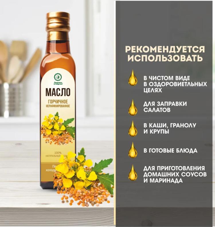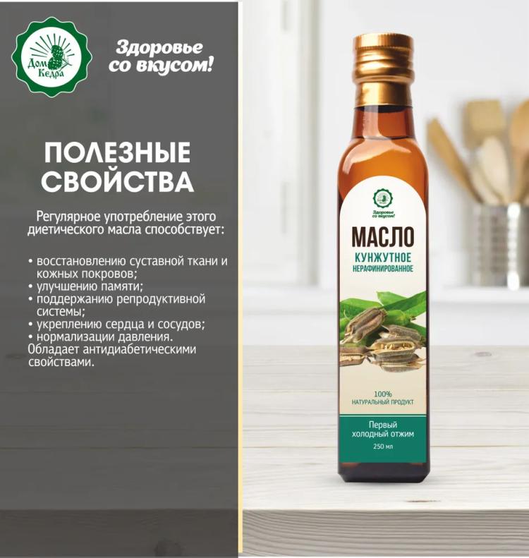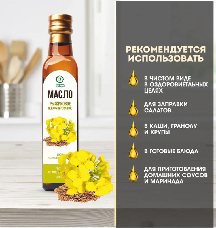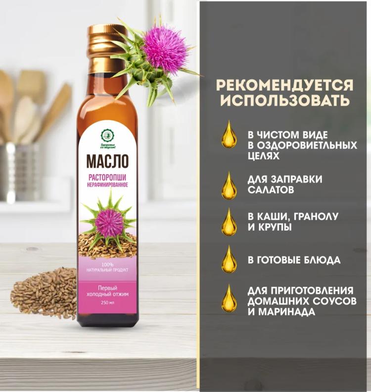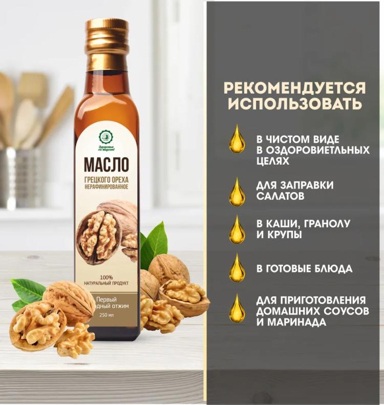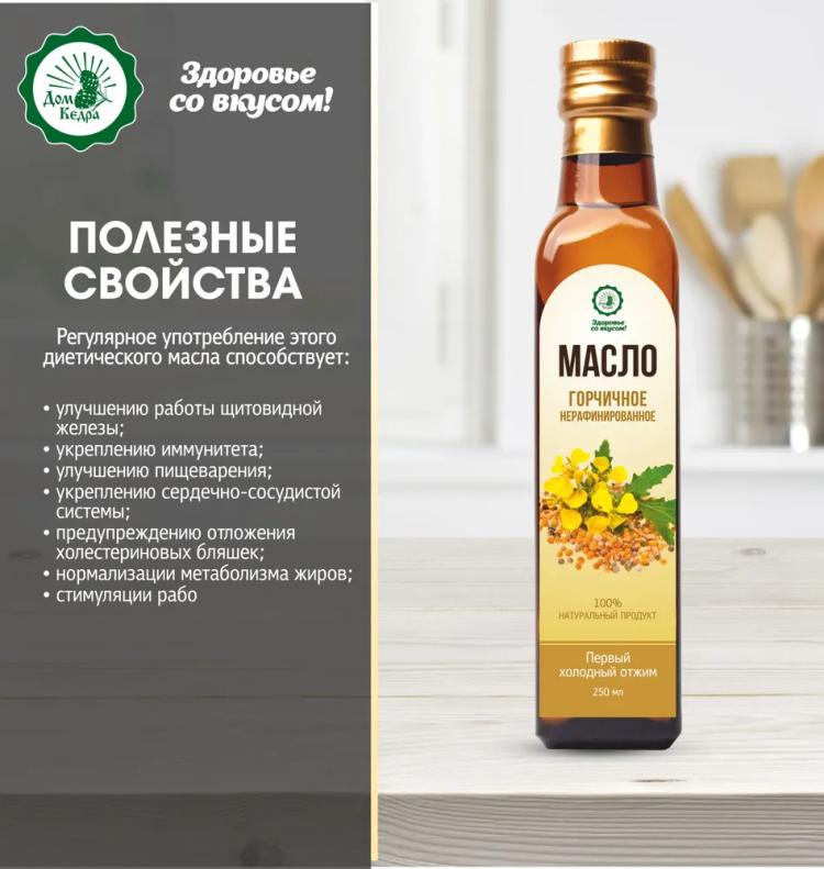 стимуляции работы мозга. Масло придаёт неповторимый вкус холодным и горячим блюдам. Рекомендуется для заправки салатов, гарниров и супов
