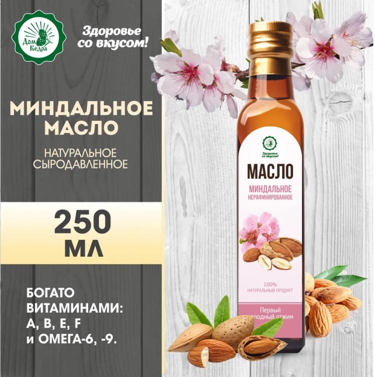 В составе масла из сладкого миндаля содержатся мононенасыщенная олеиновая (от 65 до 83%) и полиненасыщенная линолевая кислоты (от 16 до 25%), а также гликозид амигдалин, витамины В2, Е, каротины, биофлавоноиды, разные минеральные и белковые вещества, сахара. Польза миндального масла несомненна, тысячелетия назад его широко применяли в качестве эффективного косметологического и лечебного средства. В сравнении с другими плодовыми косточковыми, миндаль является рекордсменом по уровню содержания в нем масла (до шестидесяти и более процентов). Масло из семян сладкого миндаля употребляется в пищу, а также используется в приготовлении косметических средств, а полученное из семян горького миндаля – исключительно для технических и косметических целей. В его составе присутствует невообразимое количество глицерида линоленовой кислоты, полиненасыщенных жирных кислот, токостерола, фитостерола, амигдалина и других активных и полезных веществ. Помимо этого, оно богато витаминами, в частности витаминами Е, F, A, группы B,