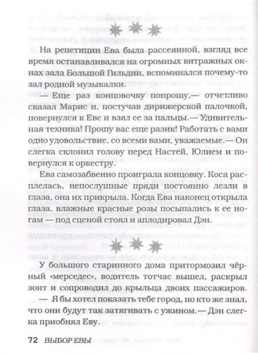 Она любит музыку. И мужчин._x000D_ Ее зовут Ева, она скрипачка. Ее жизнь — гастроли. Почти каждый день она просыпается в новом городе. Часто с новым мужчиной._x000D_ Роман в новеллах о музыке и любви._x000D_ «Музыка — это, конечно же, про любовь. Нет, естественно, про смерть тоже. Даже немного про еду — иначе зачем же в ресторанах нужна была бы музыка, — но про любовь всё-таки больше._x000D_ Если посмотреть правде в глаза, то, пожалуй, даже про секс. Шикарный, широчайший пласт музыки именно «про это». Выбор — вопрос личных пристрастий, бэкграунда, воспоминаний и ассоциаций. То самое, что называется «любить ушами». И телом, кстати, тоже, потому что ритм в музыке — штука далеко не последняя»._x000D_ Владимир Зисман, музыкант, автор книги «Путеводитель по оркестру и его задворкам»