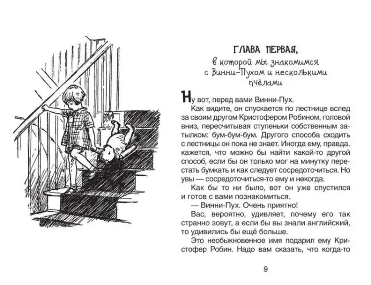 Книга А. Милна о Винни-Пухе с черно-белыми классическими иллюстрациями Э. Шепарда в пересказе Б. Заходера - золотой фонд детской литературы. В сборник вошли две книги историй: «Винни-Пух» и «Дом на Пуховой Опушке». Издательство «Росмэн» обладает эксклюзивными правами на издание книг о Винни-Пухе с иллюстрациями Эрнеста Шепарда.