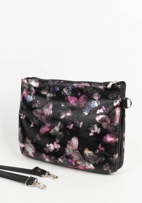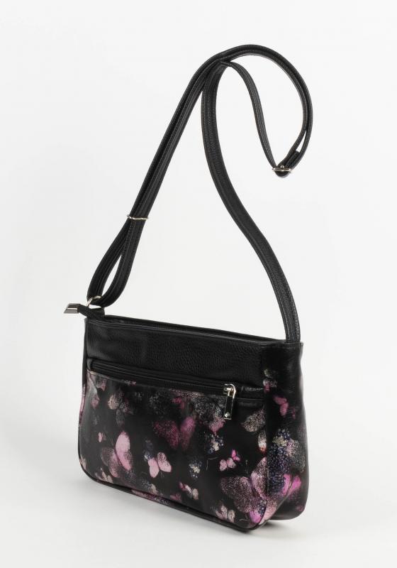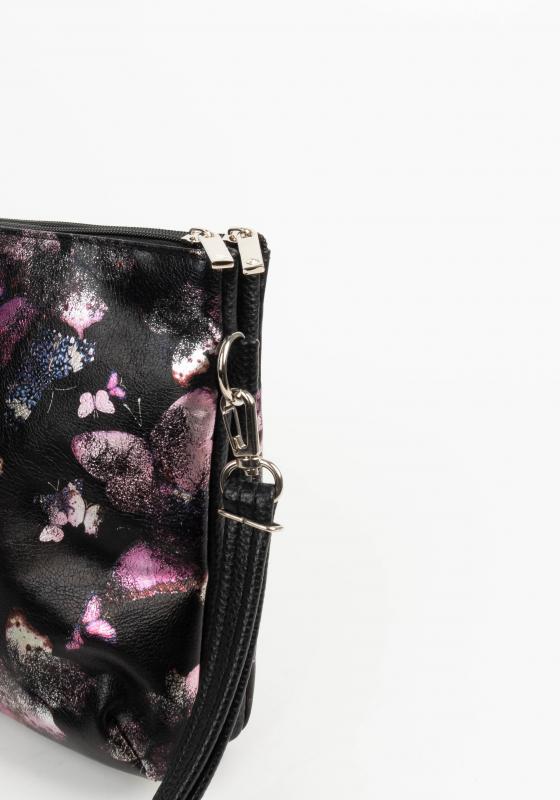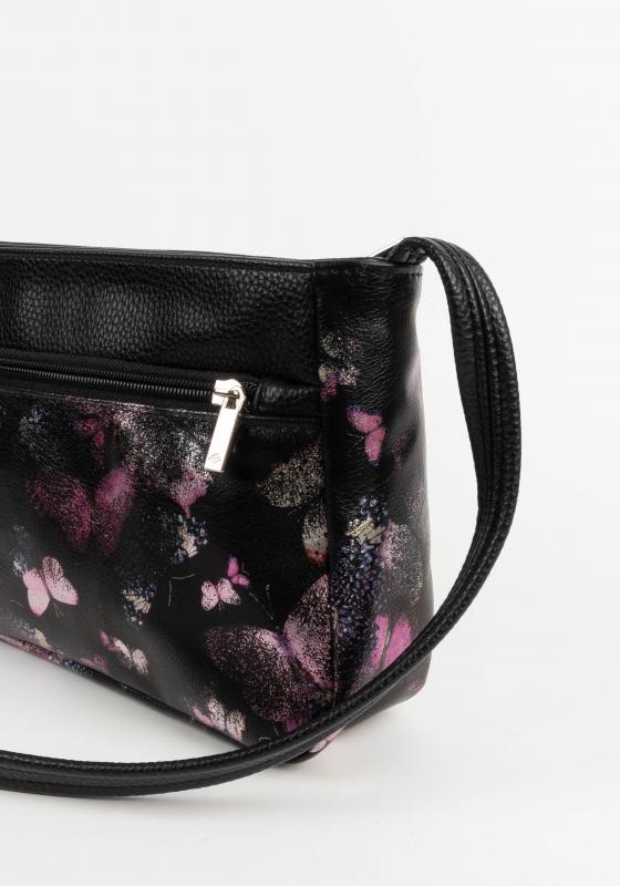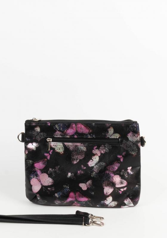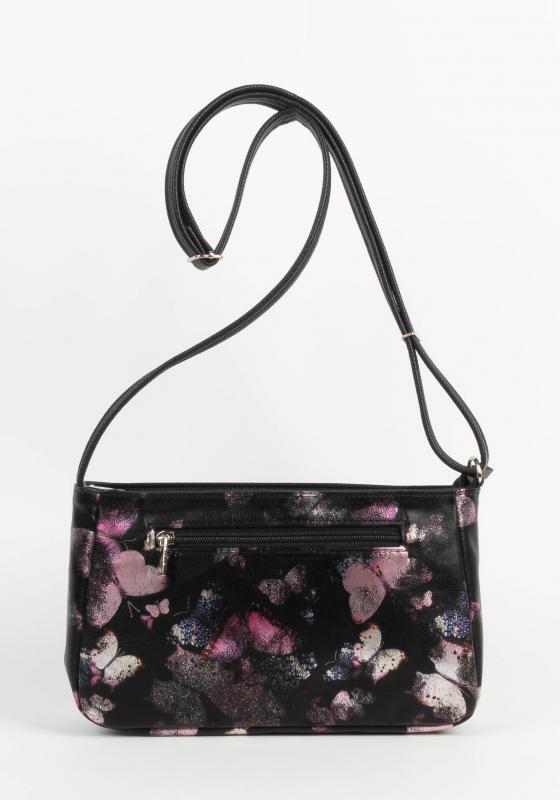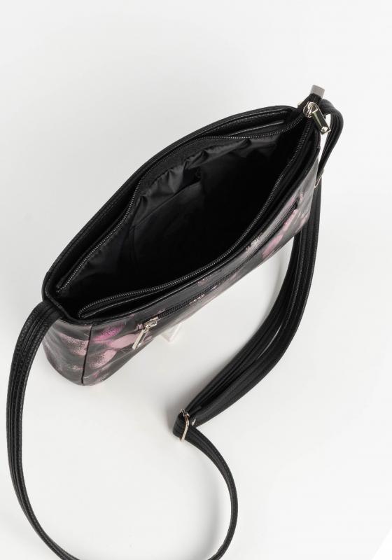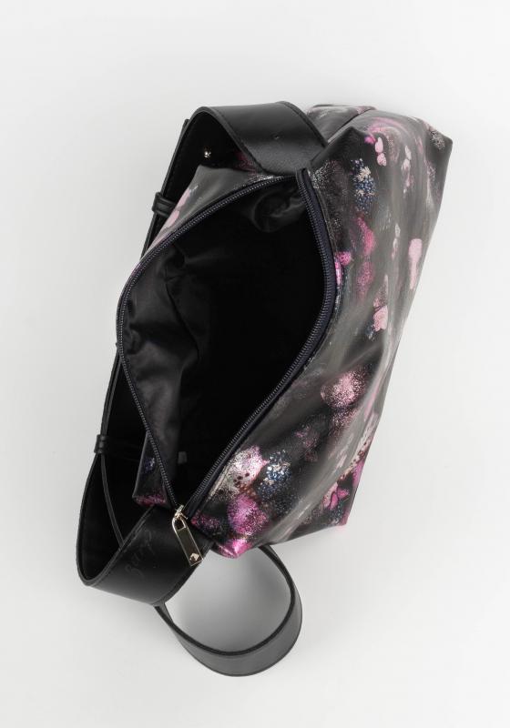 Закрывается на клапан с магнитными кнопками Задняя стенка: карман на молнии Одно отделение Внутри: открытый карман Заплечный ремень (62 - 99 см) Размеры: