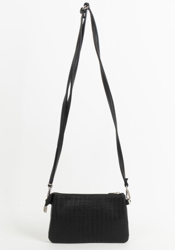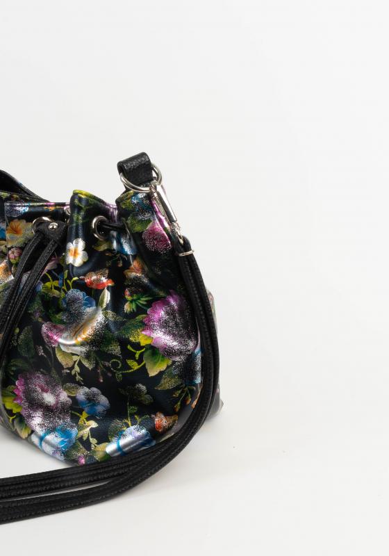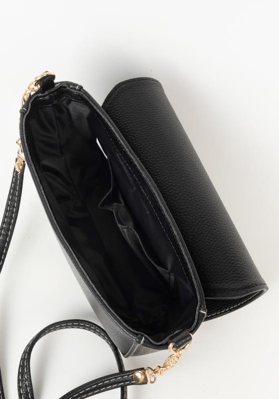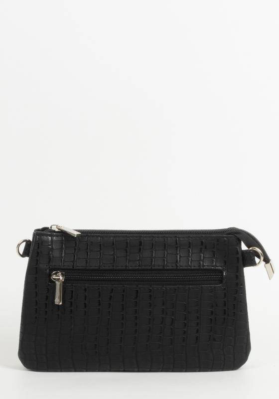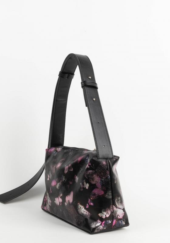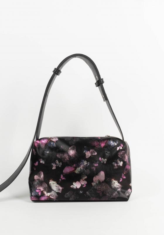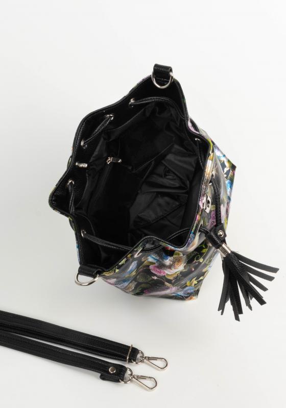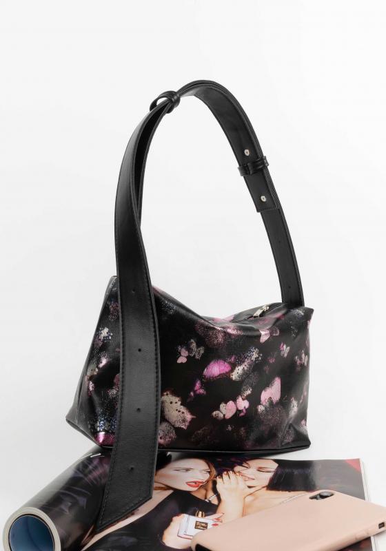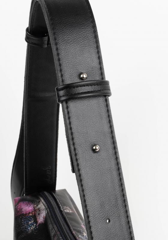 Закрывается на клапан с магнитными кнопками Задняя стенка: карман на молнии Одно отделение Внутри: открытый карман Заплечный ремень (62 - 99 см) Размеры: