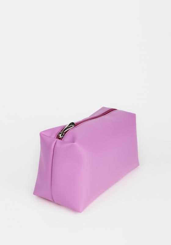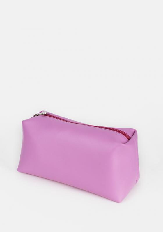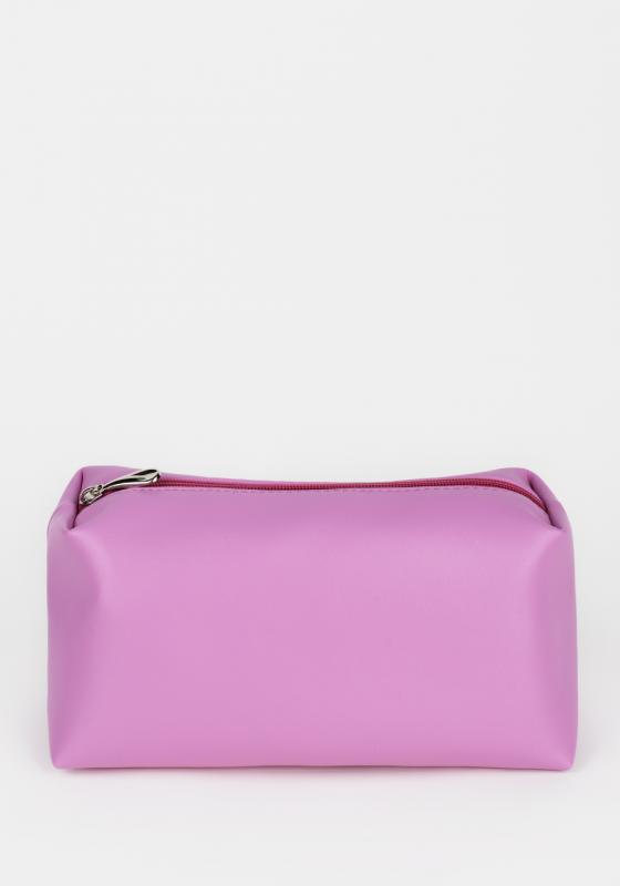 Прямоугольная косметичка из мягкой гладкой экокожи в ярко-розовом оттенке. Размеры: