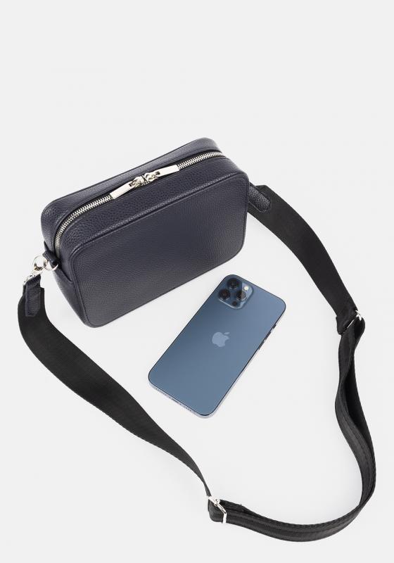 Сумка женская кроссбоди из натуральной кожи Одно отделение. Передняя стенка: открытый карман Заплечный ремень 85-132 см. Размеры: Длина(по дну) 20 см Высота 12 см Ширина(по дну) 6 см
