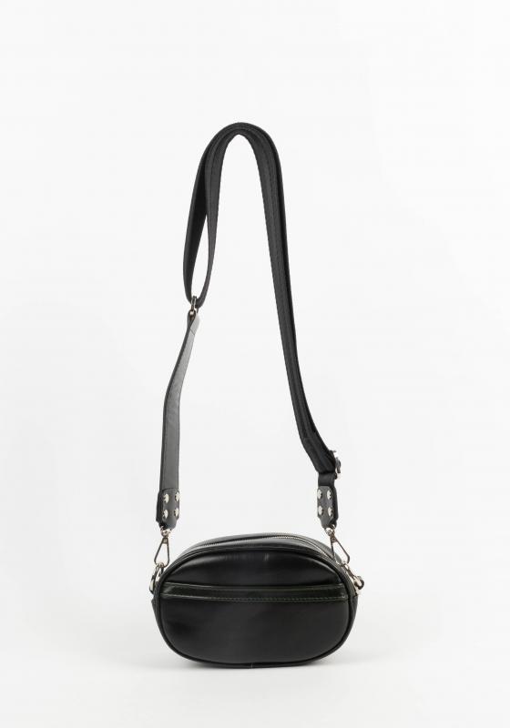 Задняя стенка: карман на молнии Одно отделение Внутри: средник на молнии, два кармана на молнии, карман для ключей и карточек Заплечный ремень 78-140 см Размеры: