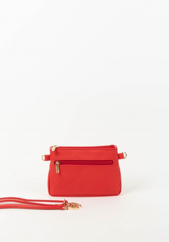 Одно отделение. Задняя стенка: карман на молнии Внутри: карман для ключей Заплечный ремень с настройкой длины Размеры: