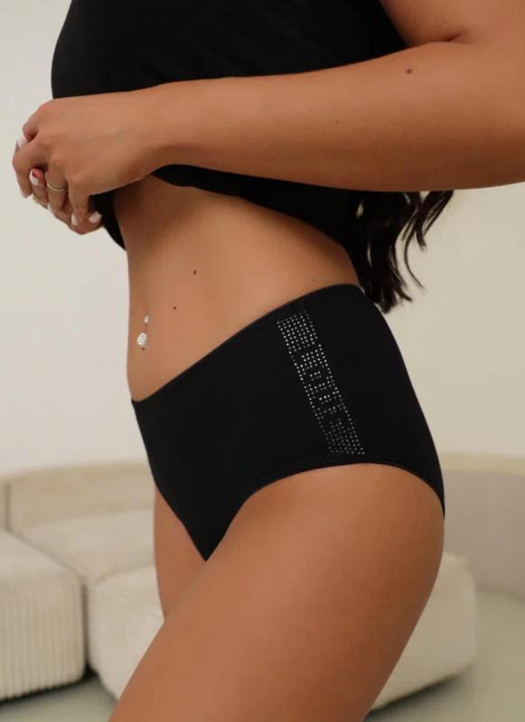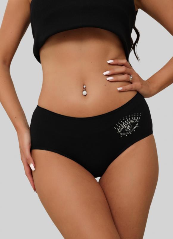 Женские трусы средней посадки — это идеальный выбор для тех, кто ценит комфорт и удобство. Средняя посадка позволяет изделию идеально подчеркнуть фигуру, не вызывая дискомфорта, связанного с высокой или низкой посадкой. Аппликация из страз добавляет элемент стиля и элегантности, делая изделие привлекательным и оригинальным. Ластовица выполнена из 100% хлопка. Тугая резинка обеспечивает лучшее прилегание к телу, обеспечивая дополнительную поддержку и комфорт в течение всего дня.
