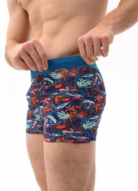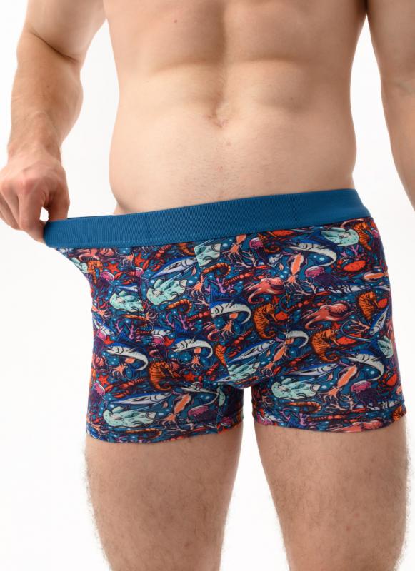 Эти мужские трусы из 100% хлопка обеспечивают максимальный комфорт и дышащие свойства. Яркий принт добавляет стильный акцент, а мягкая ткань нежно облегает тело. Идеальный выбор для повседневной носки, они сочетает в себе качество и оригинальность.