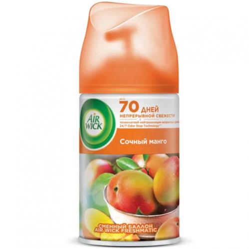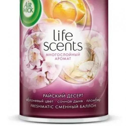 Сменный баллон для автоматического освежителя воздуха AirWick с ароматом Райский десерт, старое название Королевский десерт. Сменный флакон освежителя используется в автоматическом диспенсере Air Wick Freshmatic для устранения неприятных запахов, создания свежести и комфортной атмосферы с помощью приятных ароматов. Аэрозольный освежитель воздуха Эрвик можно использовать как для дома, так и в офисах, магазинах, ресторанах, общественных зданиях для нейтрализации запахов в туалетах, ванных комнатах, кухнях,помещениях для курения. Одного аэрозольного спрея Air Wick достаточно для поддержания аромата до 70 дней в одной комнате. Точное время использования ароматизатора зависит от настроек интенсивности распыления, установленных на автоматическом распылителе Airwick.