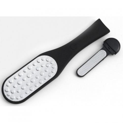 Лазерная тёрка для педикюра поможет в домашних условиях убрать огрубевшую кожу с ваших ног и пальцев. Минитерка, расположенная в ручке пилки, поможет справиться с проблемными местами на пальцах ноги и руки. На металлической поверхности с помощью лазера сделаны микрозубчики, которые за 10 пропилов снимут 1 мм огрубевшей кожи. Другая сторона тёрки отполирует уже подготовленный участок до идеального состояния. Проводить такую процедуру можно как на распаренной коже ног, так и на сухой. Между подходами нужно промывать рабочую область в тёплой воде. По завершении процедуры следует намазать ножки увлажняющим кремом, при необходимости продезинфицировать тёрку