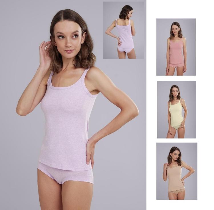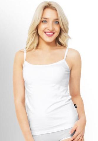 Майка женская из эластичного хлопкового полотна. Узкая бретель. Состав: 92% хлопок, 8% эластан Особенность и отличие от CLE LM001-1у Майка жен.уз.брет. в ширине бретели. Новая бретель, как 2 узкие бретели, бретелей бюстгалтера не видно Надеваем в качестве верха к любым низам