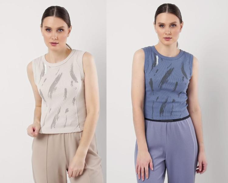 . Горловина, пройма и низ изделия открытые срезы Состав: 92% Вискоза, 8% Эластан