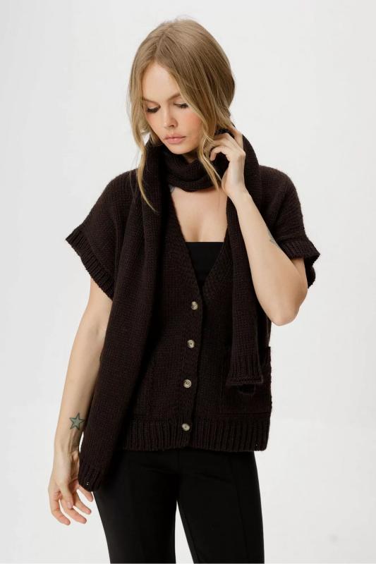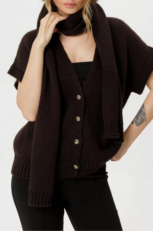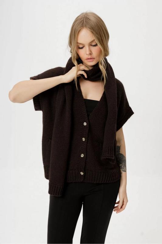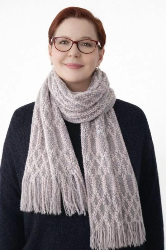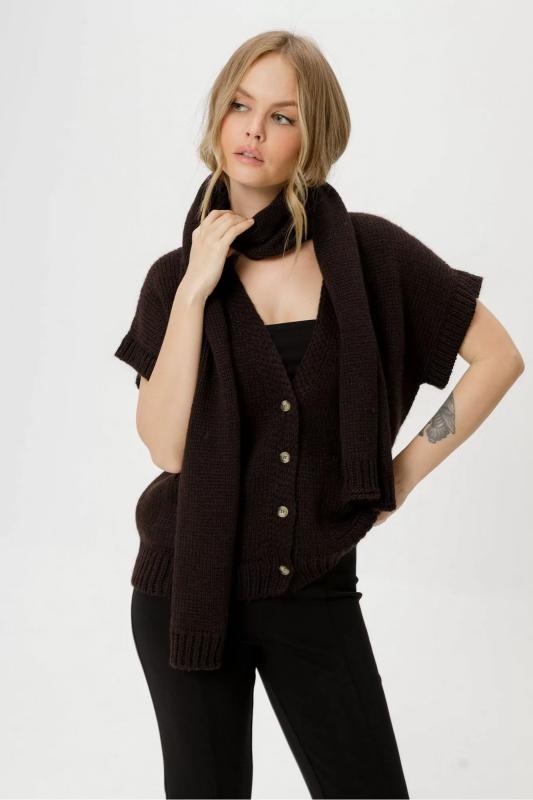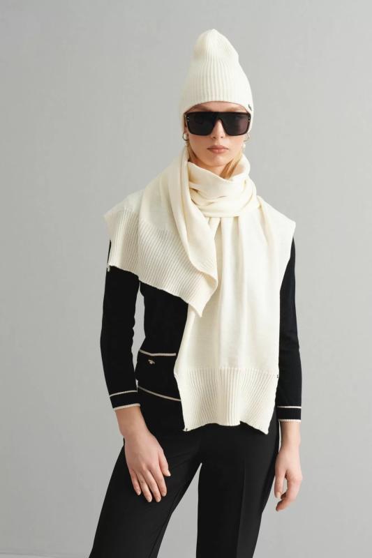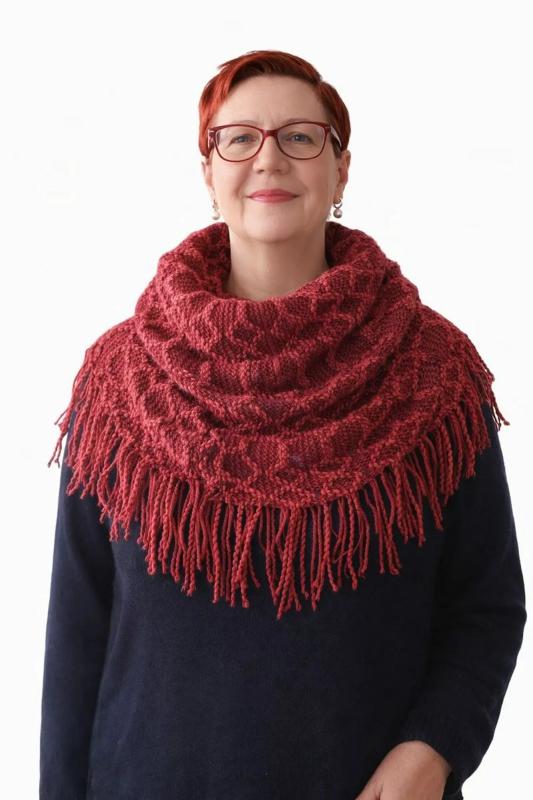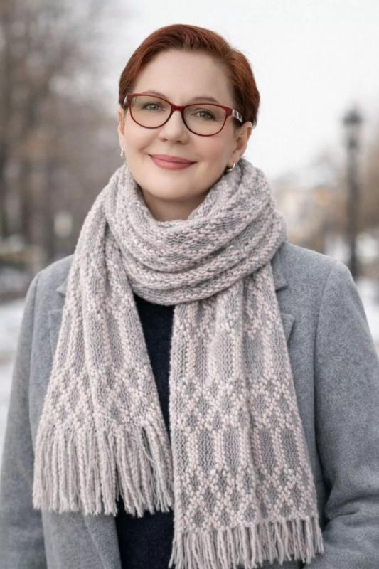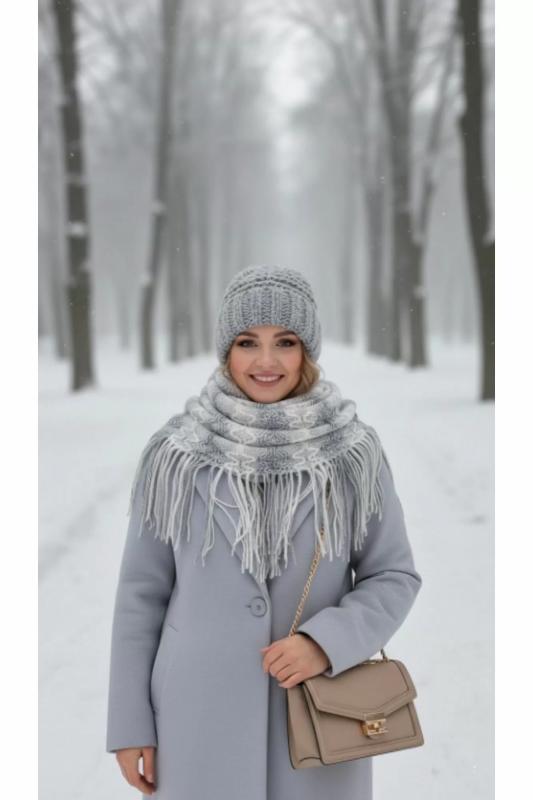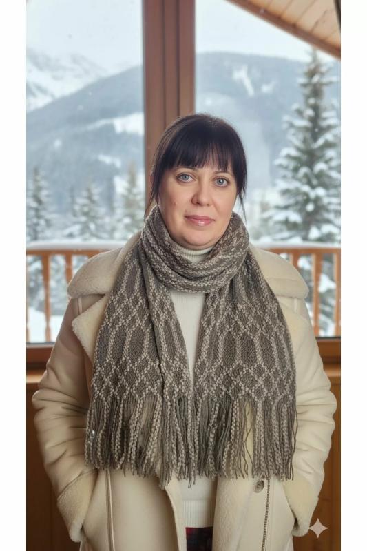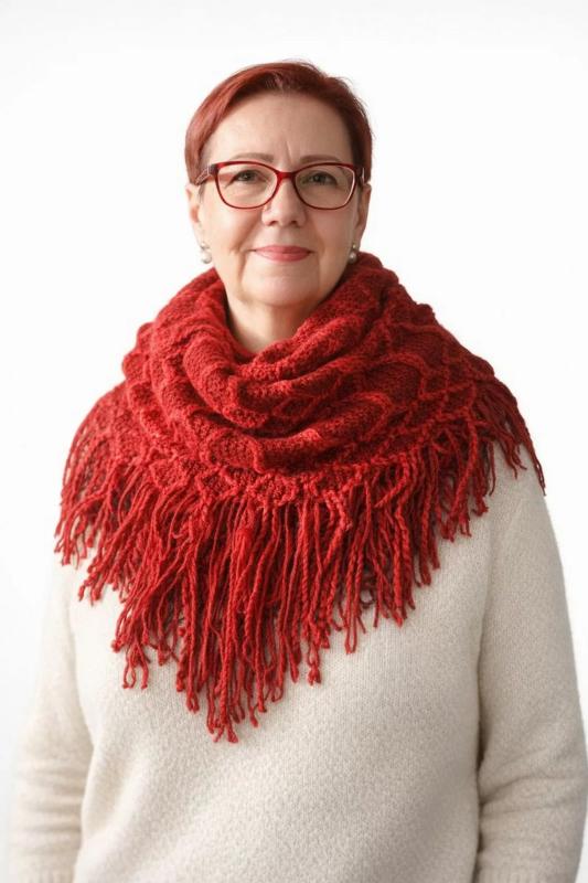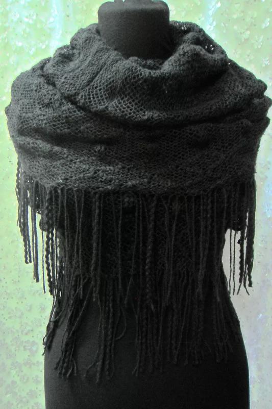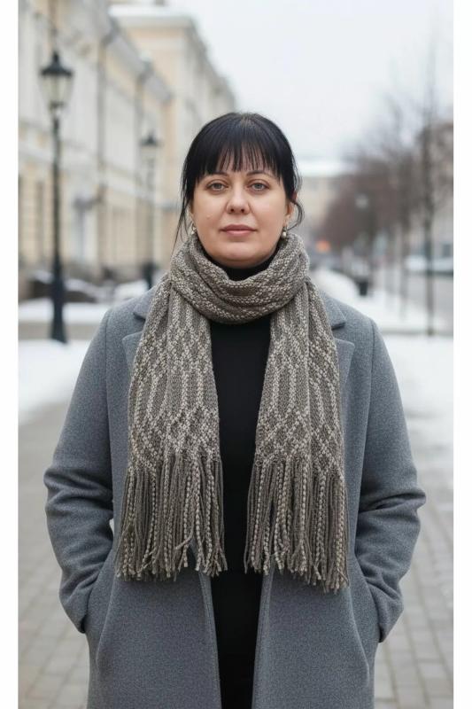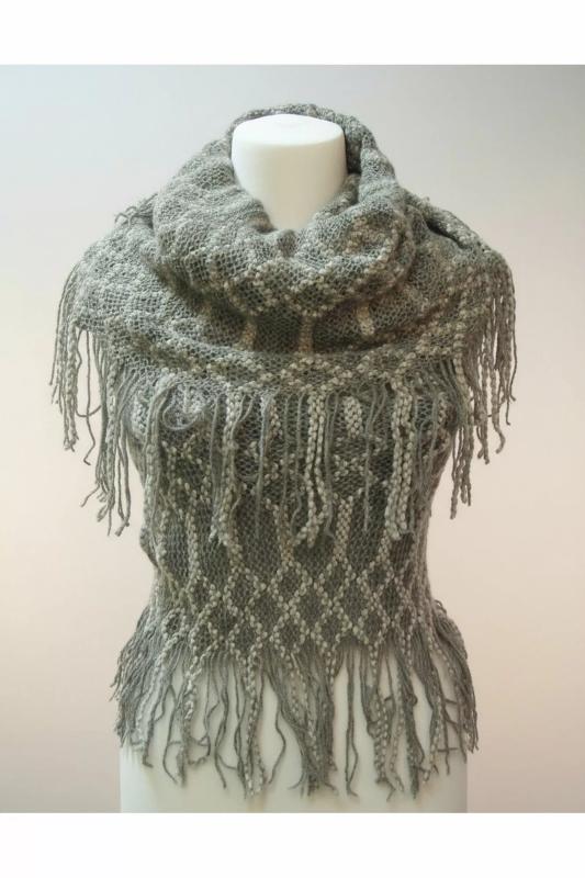 Шарф-снуд женский выполнен из шерстяного сетчатого кружевного полотна. Края изделия не обработаны. Деталь шарфа стачана между собой. Размер 76*50 см