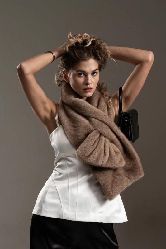 - актуальный тренд, который добавляет образу роскоши и статуса. Носить можно как акцентный аксессуар с пальто, куртками, жакетами и вечерними платьями. Длина изделия 125 см, ширина 25 см.