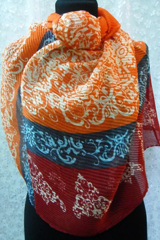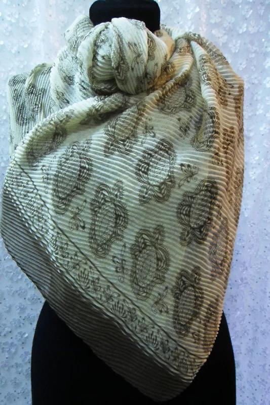 Изделие обладает нежной текстурой и приятным на ощупь блеском, что делаем его очень комфортным для ношения. Не теряет цвет и не пожвержен деформации после стирки. Размеры: 70х70.