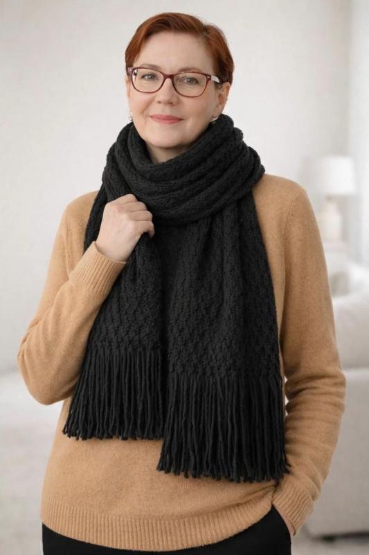 Палантин с бахромой по узкому краю, срезы закрытые. Размер 200*68 см.