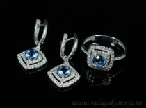 Кольцо и Серьги С925 с родиевым покрытием и лондон топазом 14мм размер 17,5, 6,7гр