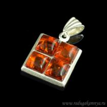 Кулон с янтарём в посеребрении квадрат 17мм коньячный