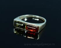 Кольцо с янтарём в посеребрении двойка 19*5мм зеленый, коньячный