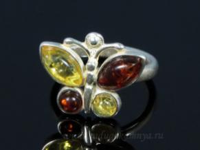 Кольцо посеребренное с янтарём бабочка медовый, коньячный