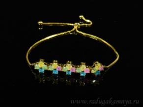 Браслет с цирконами "Лютики" цв.ассорти в золотистом металле.