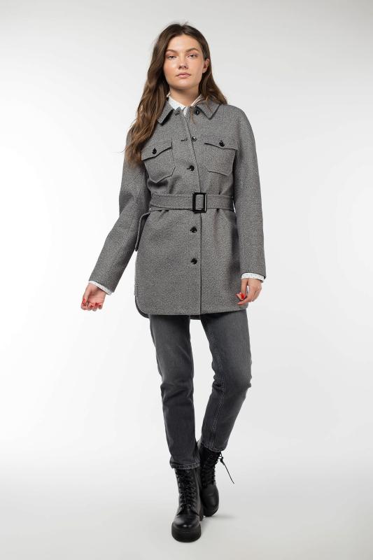 Практичное демисезонное пальто Анжелика послужит отличным решением на каждый день. В такой одежде удобно прогуливаться, посещать занятия или ходить на работу, сочетая ее с брюками или джинсами, а также комфортной обувью. Представленная модель имеет рубашечный воротник и цельнокроеный рукав. В качестве застежек выступают пуговицы. Область талии подчеркивает широкий ремень с прямоугольной пряжкой. Необычно смотрятся накладные нагрудные карманы.