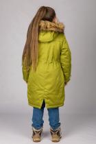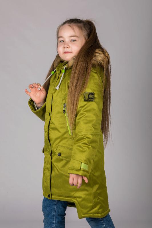 Парка для девочки изготовлена из однотонной курточной ткани с влагоотталкивающей пропиткой. Силуэт прямой.Спинка с кокеткой,со средним швом,по низу которого обработана шлица. Кулиска по линии талии спинки переходит на боковые части полочек. Застежка центральная на тесьму-молнию,закрытую планкой с кнопками. Низ куртки фигурный. Рукава втачные,с рельефными подрезами и с регулировкой ширины рукава по низу с помощью хлястика с липкой ленты. Полочки с рельефами,в швах которых обработаны карманы с тесьмой-молнией,а на нижних частях полочек-прорезные карманы с клапанами и кнопками.Капюшон втачной,со съемной опушкой,с регулировкой прилегания по лицевому краю при помощи шнура и фиксаторов.Куртка декорирована оригинальной вышивкой на полочке и рукаве. Верхняя часть подкладки полочек и спинки сделана из флиса,а нижняя часть и подкладка рукава–из полиэстера,подкладка капюшона–вельбоа. Ткань верха Смесовая п-э-65% х-б-35% Ткань подкладки Подкладка 1 флис 160г-м2 ,100% п-э, антипиллинг Подкладка 2 таффета 190 , п-э 100% П