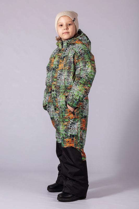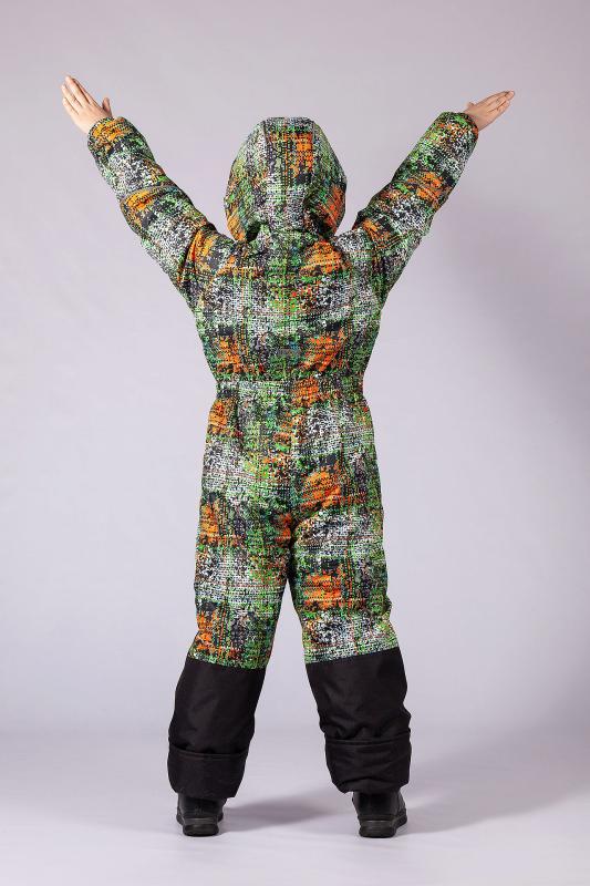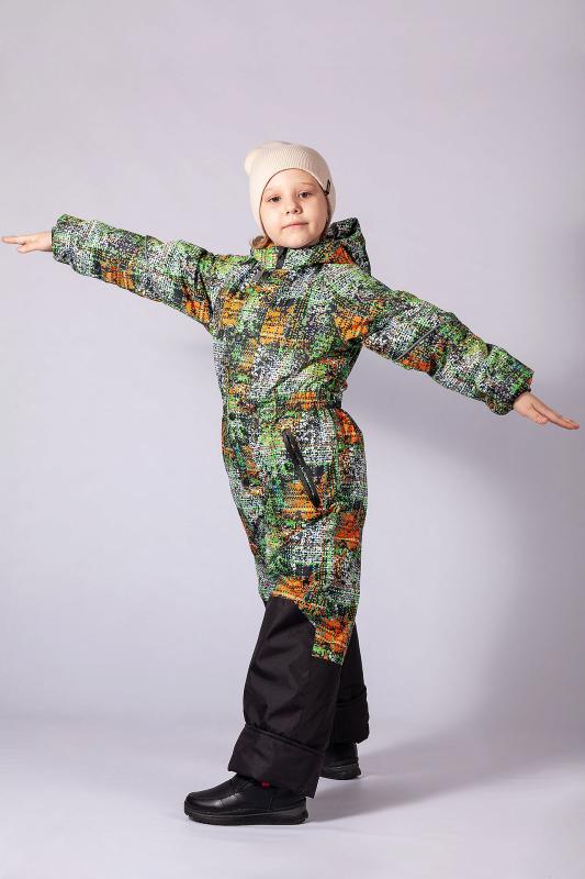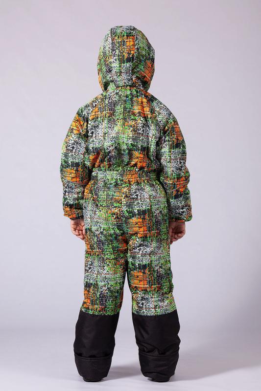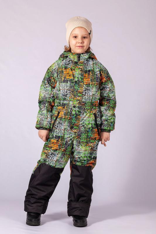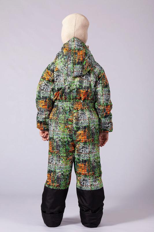 Комбинезон демисезонный из мембранной курточной ткани с влаго и ветрозащитным покрытием, что во время игр на свежем воздухе позволяет ребенку чувствовать себя комфортно. Застежка центральная на молнию, которая закрывается планкой с кнопками. По линии талии, низу рукавов и лицевому краю капюшона для лучшего прилегания имеется резинка. По бокам находятся карманы на молнии. Капюшон вшит с внутренним трикотажным воротником, обеспечивающем плотное прилегание к шее. Низ брюк усилен отделочной тканью. Подкладка капюшона, полочек и спинки и внутренняя манжета рукава изготовлены из флиса, а подкладка рукавов и брюк из полиэстера. По низу брюк предусмотрена штормовая манжета с силиконовой резинкой. Ткань верха: Курточная 100% п-э, покрытие WR, мембрана 3000мм-3000г-м2