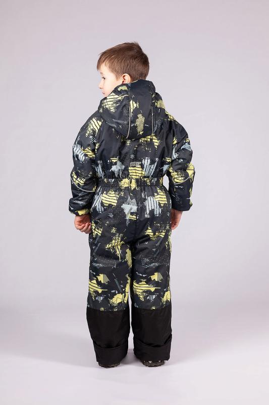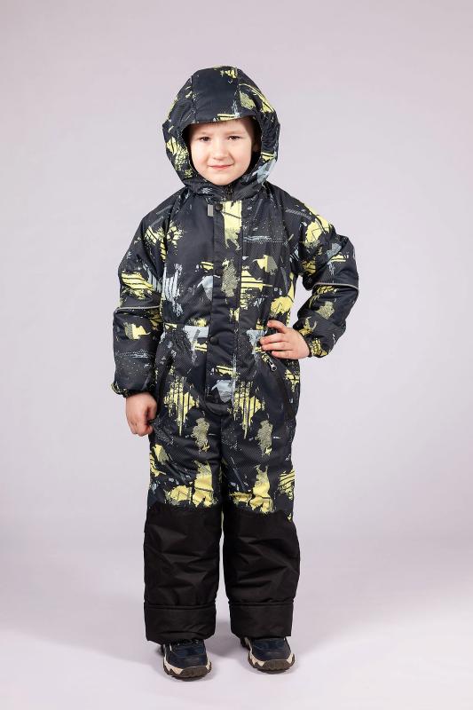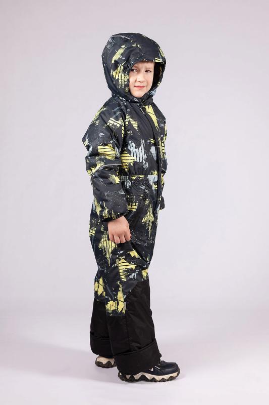 Комбинезон демисезонный из мембранной курточной ткани с влаго и ветрозащитным покрытием, что во время игр на свежем воздухе позволяет ребенку чувствовать себя комфортно. Застежка центральная на молнию, которая закрывается планкой с кнопками. По линии талии, низу рукавов и лицевому краю капюшона для лучшего прилегания имеется резинка. По бокам находятся карманы на молнии. Капюшон вшит с внутренним трикотажным воротником, обеспечивающем плотное прилегание к шее. Низ брюк усилен отделочной тканью. Подкладка капюшона, полочек и спинки и внутренняя манжета рукава изготовлены из флиса, а подкладка рукавов и брюк из полиэстера. По низу брюк предусмотрена штормовая манжета с силиконовой резинкой. Ткань верха: Курточная 100% п-э, покрытие WR, мембрана 3000мм-3000г-м2