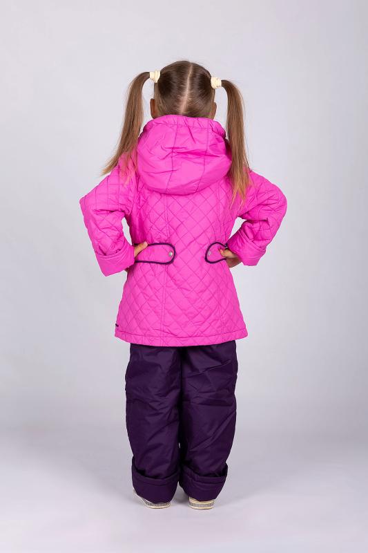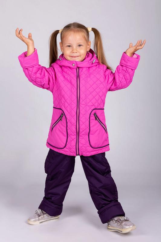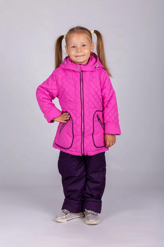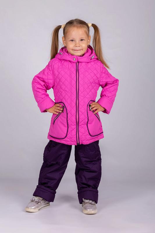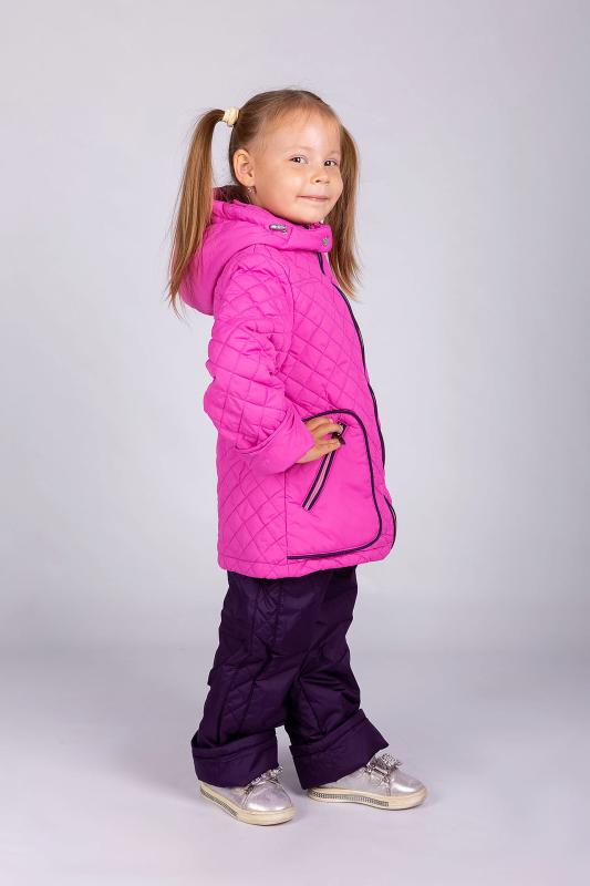 Демисезонный комплект выполнен из легких курточных тканей с влаго и ветронепроницаемой пропиткой, с утеплителем, состоит из куртки и полукомбинезона. Куртка полуприлегающего силуэта, стеганая. Застежка центральная на молнию, с ветрозащитным клапаном. На полочках декоративные накладные карманы и выполненные на них прорезные карманы с молнией. Воротник-стойка и отстегивающийся капюшон с регулировкой по лицевому краю на шнур и фиксаторы. Контуры накладных карманов и молний подчеркиваются контрастным кантом в цвет полукомбинезона. Подкладка полочки и спинки -хлопчатобумажный трикотаж, подкладка рукавов –полиэстер. Изделие комфортное и легкое, приятное в эксплуатации. Полукомбинезон полуприлегающий с кулисой-резинкой по линии талии спинки, с отворотом по низу, позволяющим регулировать длину. Грудка и боковые вставки передних половинок стеганые, по линии талии переда вставлен кант в цвет куртки. Застежка центральная на тесьму-молнию. Бретели с резинкой и регулировкой по длине, застегиваются на фастексы -это удобно