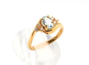 Кольцо c голубым топазом, 1 камень, 6 цирконов, украшение из ювелирного сплава с нанесённым гальваническим методом золотым покрытием толщиной 1 микрон со вставками из голубого топаза