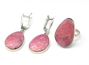 Кольцо и серьги с родонитом " Орлец ", размер-18