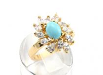 Кольцо с позолотой бирюза (имитация) в стразах, размер 19