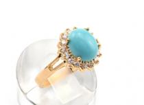 Кольцо c бирюзой, украшение из ювелирного сплава с нанесённым гальваническим методом золотым покрытием толщиной 1 микрон со вставками из бирюзы