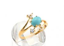 Кольцо с бирюзой, украшение из ювелирного сплава с нанесённым гальваническим методом золотым покрытием толщиной 1 микрон со вставками из бирюзы